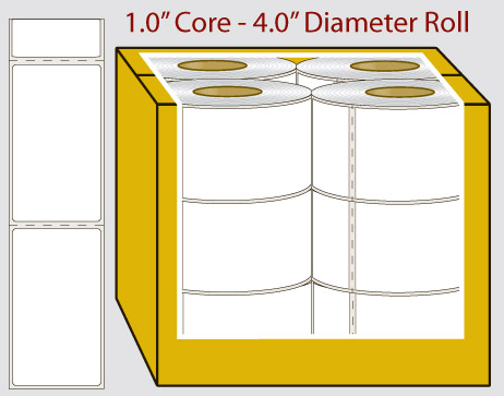4" x 1" White - Direct Thermal Labels - 1" Core - Smith Corona Overview. This 4" x 1" White Direct Thermal label comes on a 1" core with a 4" outer diameter. There are 16 rolls per box and 1350 labels per roll. These labels are also perforated for easy tearing and hand application. Perforation refers to a row of small holes punched into the liner in between each label.