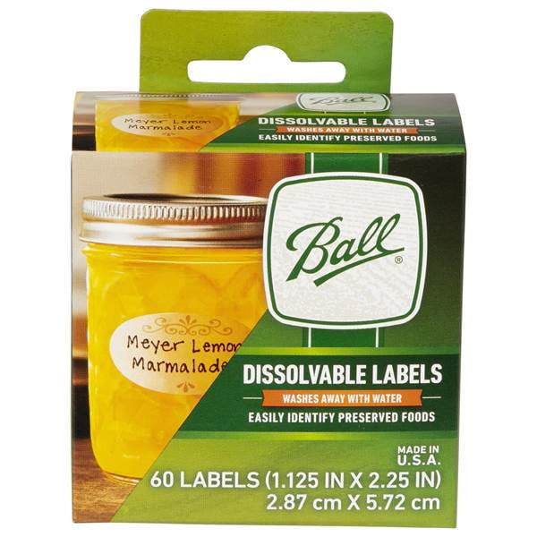 Ball Dissolvable Labels, Set of 60 - Amazon.com Ball Dissolvable Canning Labels 60 labels each 481 14 offers from $6.33 Ball Dissolvable Canning Labels, 60 Count (Pack of 2) 831 11 offers from $13.95 Jarden Ball Dissolvable Canning Labels, 60-Labels per Pack (3-Packs Total) 361 9 offers from $12.99 Ball Dissolvable Canning Labels 60 pk 37 7 offers from $9.50