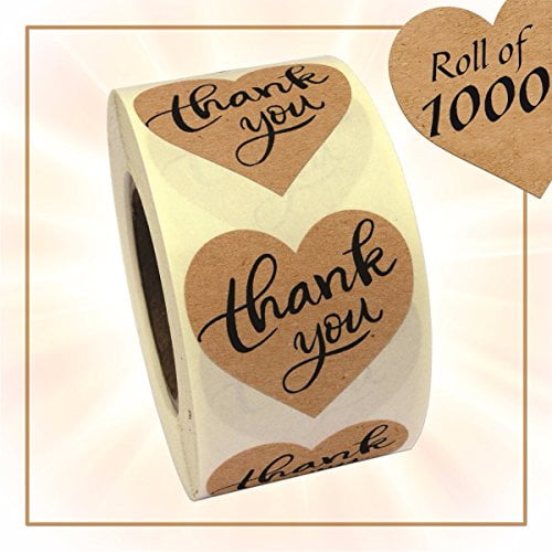 Thank You 1.5" Inch Roll Love Heart Shaped adhesive Sticker Labels,Natural Paper Kraft, 1000 Stickers