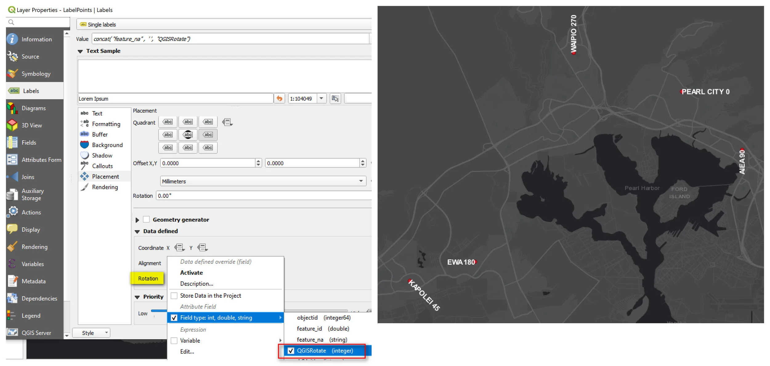 Content of rotation labels